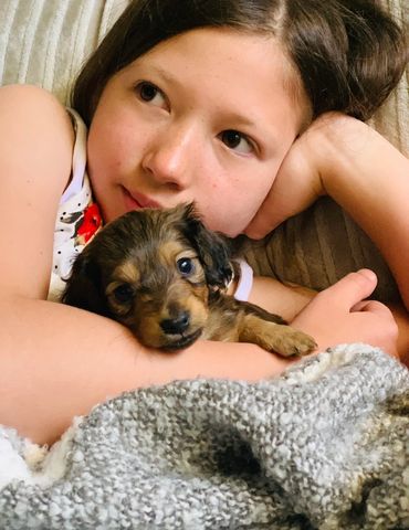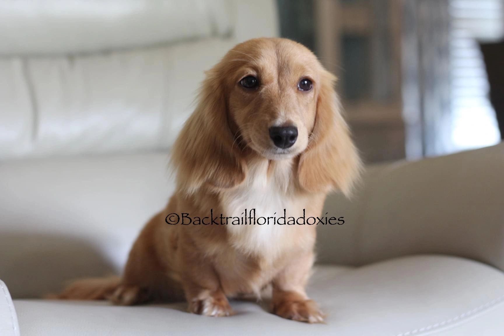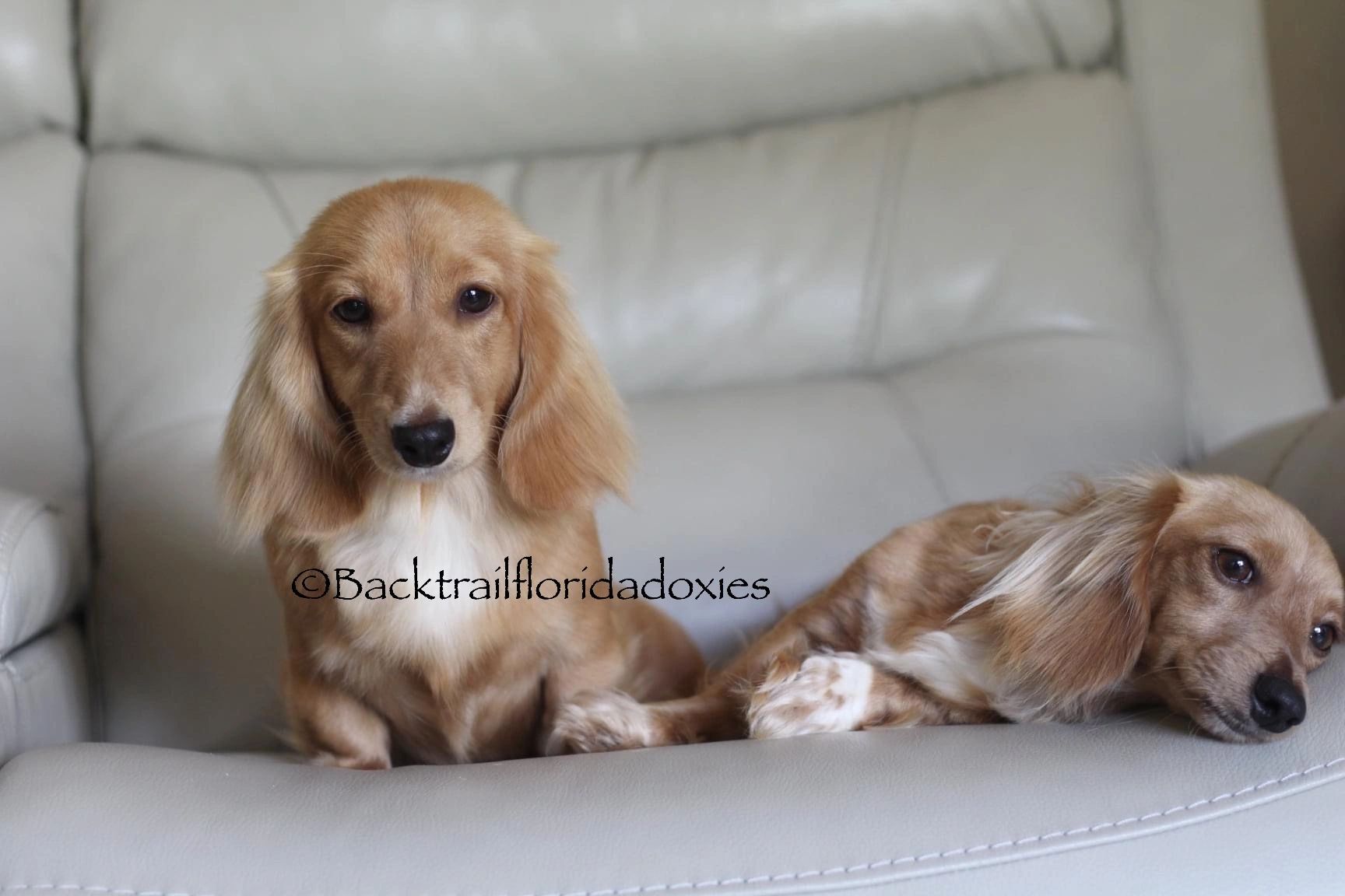 We are a private, small in-home purebred Miniature Dachshund breeder offering quality, family-raised Dachshunds in north Central Florida. We do not own or raise any other breeds. We have a dedicated love for these amazing weenies and have owned a dachshund as far back as we can remember, so in 2010 we decided to start the journey of raising these wonderful dogs so other families can enjoy them as much as we do. Our dogs are raised in our home, not a kennel. Our puppies are raised and socialized around kids and our other pets, which include our other doxies, cat and bird so they come from a multi-pet friendly home. Dachshunds are affectionate, smart, active, loyal and protective companions. They are excellent family dogs and do great with children of all ages. We are located in north central Florida, and live just outside of the Ocala area which is a 1.5 hour drive north of Orlando. We raise both Longhair and smooth coats (short hairs) We usually have a variety of colors and patterns, including creams, dapples & piebalds. Our adult Dachshunds are AKC registered and we only raise miniatures. ALL of our puppies will be placed as family companions to pet- only homes with no registration. We DO NOT offer breeding rights to anyone, which means your puppy is not allowed to be used for breeding purposes. We DO NOT sell to puppy stores/flippers so do no attempt to contact us. We take a great deal of pride in raising healthy, happy, pet puppies with sweet temperaments for our potential families. All our puppies come with a Genetic Health guarantee against all life-threatening genetic defects. They will be examined by our Vet at 8 weeks old, and will have all age-appropriate de-wormings and Vaccinations done prior to leaving our home-along with a current Florida health certificate issued by our Veterinarian. We have many excellent references we are happy to provide to you from our past puppy families.