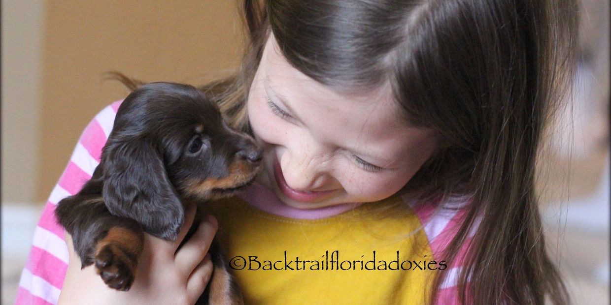 We are a private, small in-home purebred Miniature Dachshund breeder offering quality, family-raised Dachshunds in north Central Florida. We do not own or raise any other breeds. We have a dedicated love for these amazing weenies and have owned a dachshund as far back as we can remember, so in 2010 we decided to start the journey of raising these wonderful dogs so other families can enjoy them as much as we do. Our dogs are raised in our home, not a kennel. Our puppies are raised and socialized around kids and our other pets, which include our other doxies, cat and bird so they come from a multi-pet friendly home. Dachshunds are affectionate, smart, active, loyal and protective companions. They are excellent family dogs and do great with children of all ages. We are located in north central Florida, and live just outside of the Ocala area which is a 1.5 hour drive north of Orlando. We raise both Longhair and smooth coats (short hairs) We usually have a variety of colors and patterns, including creams, dapples & piebalds. Our adult Dachshunds are AKC registered and we only raise miniatures. ALL of our puppies will be placed as family companions to pet- only homes with no registration. We DO NOT offer breeding rights to anyone, which means your puppy is not allowed to be used for breeding purposes. We DO NOT sell to puppy stores/flippers so do no attempt to contact us. We take a great deal of pride in raising healthy, happy, pet puppies with sweet temperaments for our potential families. All our puppies come with a Genetic Health guarantee against all life-threatening genetic defects. They will be examined by our Vet at 8 weeks old, and will have all age-appropriate de-wormings and Vaccinations done prior to leaving our home-along with a current Florida health certificate issued by our Veterinarian. We have many excellent references we are happy to provide to you from our past puppy families.